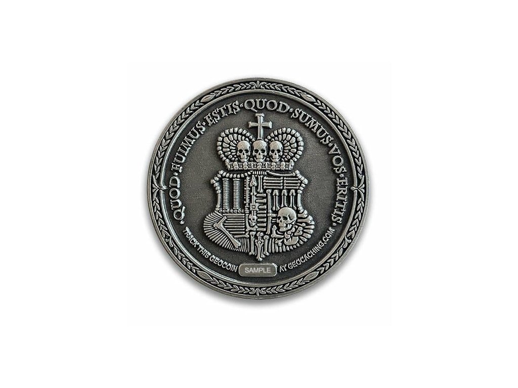A unique trackable code is printed on the side of the geocoin. Geocoin dimensions: 50.8 mm and 4 mm thick.
